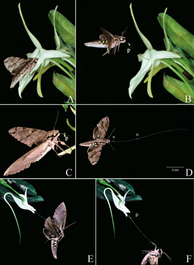 Darwin predicted that the long spur must have co-evolved with a pollinator moth with an equally long proboscis to be able to reach the last drops of nectar at the bottom of the tube.