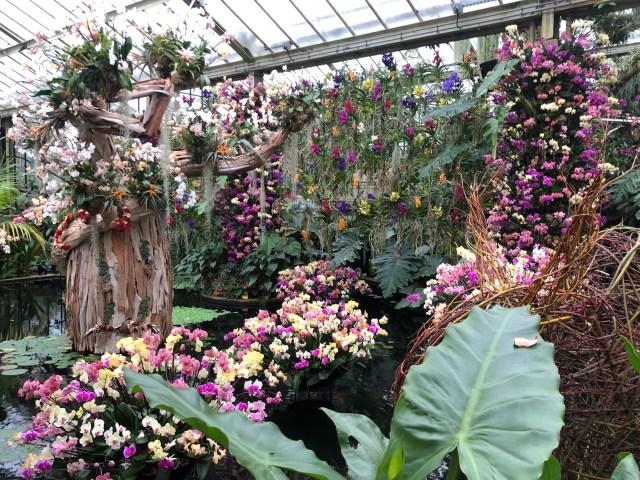 I don’t think Ive ever seen so many moth orchids – Phalaenopsis– in one place in life – not even the Orchid Garden in Singapore which is also an assault on the senses especially the eyes. Those at Kew have been bought in en masse from Dutch growers.