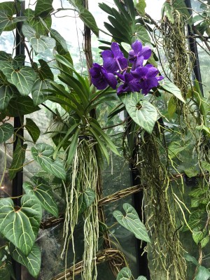 They were virtually everywhere in the warmer sections of the conservatory, on arches over the paths, covering the building’s structure, on frameworks etc etc and cascading down not just the walls but the permanent planting. There were thousands of plants in every colour of the rainbow apart from pure blue – which I didn’t think existed in orchids, -the nearest to that being Vanda caertulea which was and still is highly prized for its brilliant colour