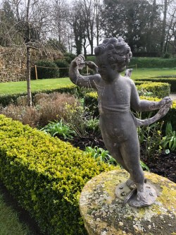 A cherub in one corner of the rose garden