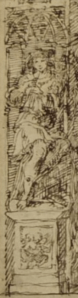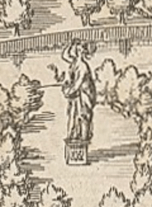 After describing the shrubs, flowering and fruit trees growing in what he called the boscage Aubrey says that “at the west end was the figure of the Gardiners wife in freestone coloured: at the east end of the Gardiner’s the like: both accoutred according to their calling.” Elsewhere he added “I have spoken of the excellence of the two great figures on Pedestalls and of their Passions, attested by that great Master in Painting Seignior Vario.” [Antonio Verrio]