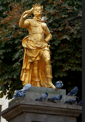 In December 1685 the Earl of Strathmore ordered four statues of Stuart monarchs from him for the gardens at Glamis Castle, cast in ‘hardened’ lead and painted to resemble ‘brass’. James I and Charles I can still be seen at Glamis. It’s thought these were probably stock figures for which Quellin already had moulds and that other garden figures were also in production perhaps under the supervision of his assistant Jan Van Nost (1687-1710), who was originally from Mechelin.