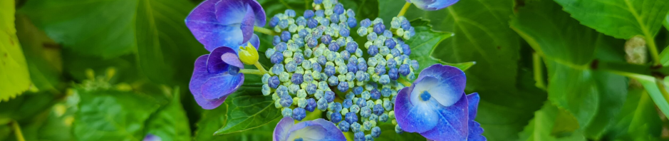 Hydrangeas are different to most other flowers in they don’t have showy or colourful petals. What we tend to think of as petals are in fact sepals, which serve the same purpose ie to attract pollinators. However the “flowerhead” on mopheads are almost entirely comprised of sterile sepals, with just a few tiny fertile flowers hidden away while on lace-caps the flowers are tiny but usually numerous and surrounded by bigger more colourful sepals. Whereas most other flowers lose their petals after they’ve been pollinated, the sepals of hydrangeas remain vibrant and on show for the whole season, which explains why hydrangeas make good dried “flowers”. The lack of obvious seeds also explains why it’s really only in the last hundred years or so that there has been much success in breeding new varieties.