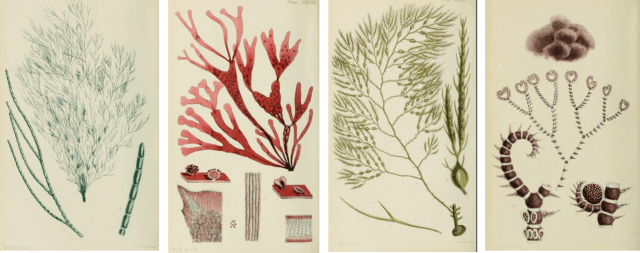 These days seaweed is being seen as a potential panacea able to solve many of the planet’s problems. It has great food potential, contributes more oxygen and absorbs more carbon dioxide that all the terrestrial rain forests combined, and derivatives from it could replace many oil-based products. However, to the first serious investigators of marine botany and biology in the late 18th and early 19thc most of that was unknown, and indeed William Harvey, the first man to devote his career to algology – the study of seaweeds – told his teacher he intended “to study my favourite and useless class, Cryptogamia. I think I hear thee say, Tut-tut! But no matter. To be useless, various, and abstruse, is a sufficient recommendation of a science to make it pleasing to me.” although that was written rather tongue in cheek because he did add that in fact there he thought there was plenty of use to be obtained from marine algae. [Memoirs].