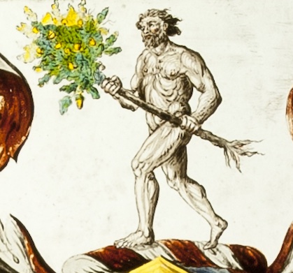 However one place that Wild Men remain prominent is in heraldry where they are used, usually in pairs, as supporters for coats of arms, a good example being those of Anne of Denmark. although in her case that’s not surprising as they are also the supporters of arms of the Danish crown.