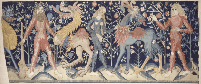 The idea takes hold especially in the German speaking world where Wild Men and other fabulous beasts become significant themes in art, poetry and pageants. By the 15th century there are a series of tapestries produced mainly in the Rhineland, Alsace and Switzerland devoted to Wild Men.