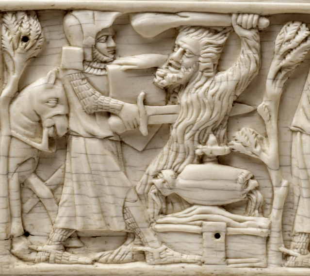 At the same time, other stories become adapted. For example the Book of Daniel tells how King Nebuchadnezzar goes mad, but while some images have him crawling round naked, he is also often portrayed as a wild man.