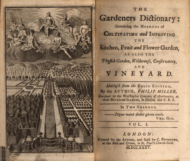 I wonder if you’ve heard of Philip Miller. If you’re not a garden historian then probably not, but he was probably the most influential British horticulturist and garden writer of the eighteenth century, amongst other things writing the first dictionary of gardening. A member of the Royal Society, his reputation stretched not just across Britain, but its colonies and most of Europe.