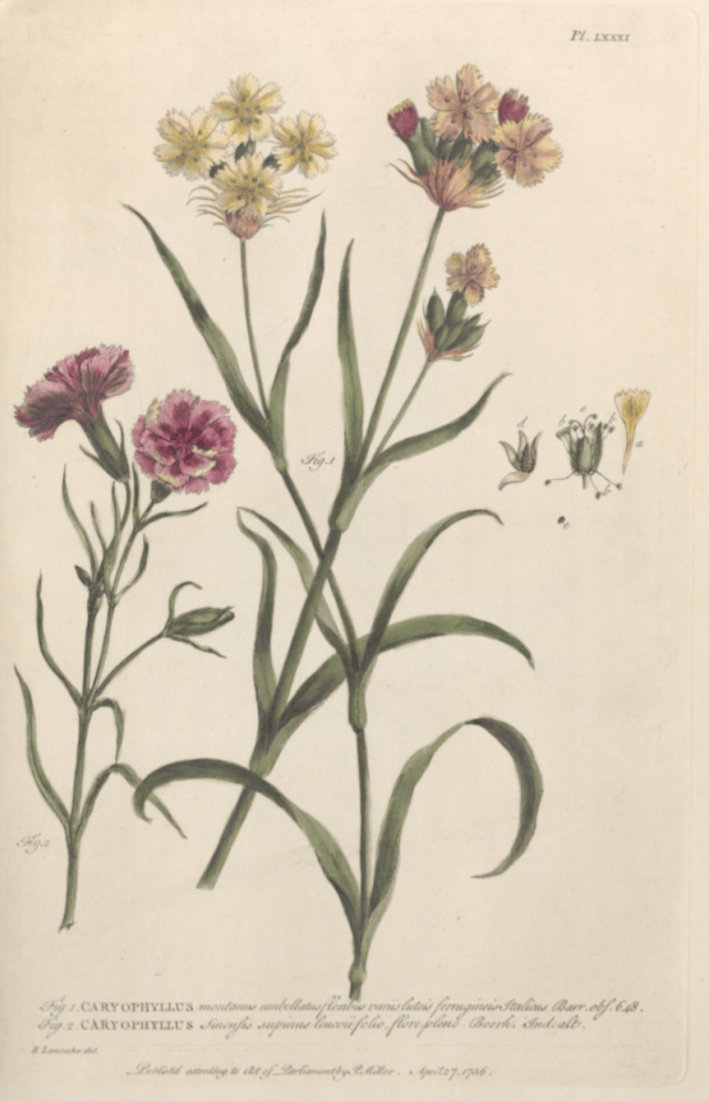 The colour plates below all come from The figures of plants, being the most beautiful, useful and uncommon plants described in The gardeners dictionary on 300 copper plates. published 1755-60