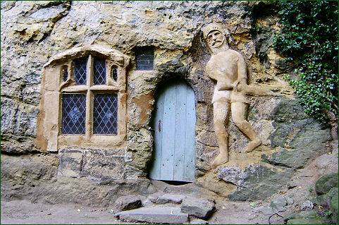 Worse still was Crag Hall near Knaresborough “hewn out of the rock without either taste or design ; then.to Sir Robert’s Cave (of this curious description) scooped out of the rock; with this figure of a Knight-Templar, guarding the door. …The only thing in character here is an old ivytree covering much of the front. Within it is filthy, and with out there is a little dirty flower garden, instead of a gloomy thicket of trees !” The cave was actually home to a genuine hermit, Saint Robert of Knaresborough in the late 12th and early 13th centuries.