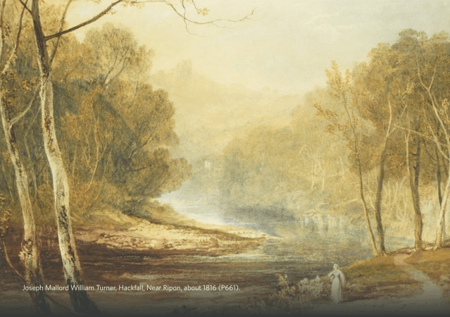He went on to describe how “overhung by steep, wooded hills, the rapid and romantic River Eure frames its broad and rapid course, (nobly swell’d by the late rains) wherein the angler will find abundant pastime from the numbers of salmon and trout : nothing can be more grandly wild, and pastoral, than the unexpected view of this river! From the hill tops, at various spots, are transcendent views, even as far as York Minster. Let those who possess steep; wooded hills, of spungy summits with streams beneath, learn from Hackfall how easy and cheap it is to form enchanting walks, and to guide the ripple down the hill. At one point — several of these rills are to be seen, gliding thro’ the wood like streaks of liquid silver.”