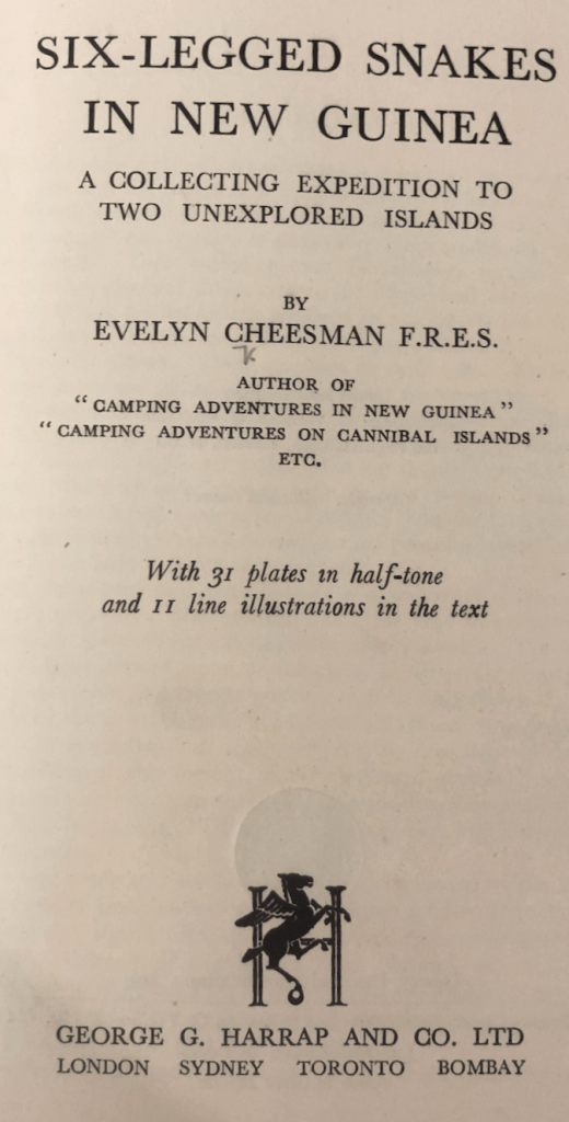 Cheesman was very self-deprecating, saying in her own account of some of her adventures “the person herself is not interesting” but as her publishers added in the preface, that was “an opinion we cannot share”. [Things Worthwhile 1957] . I have to agree. After all someone “not interesting” is unlikely to have written books with titles including Camping Adventures in New Guinea and Camping Adventures on Cannibal Islands.