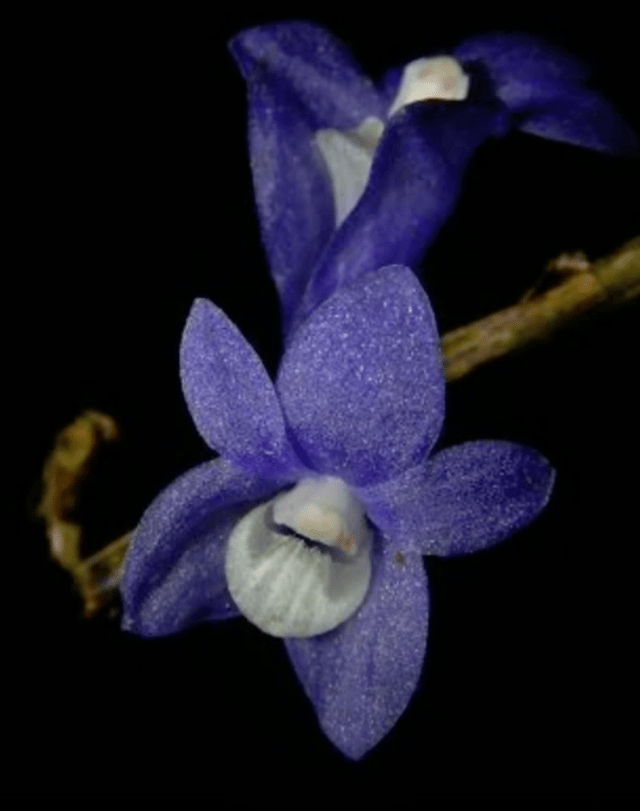 But, and its a very big BUT Dr Schuiteman did not find the blue orchid on Waigeo, but in the herbarium of London’s Natural History Museum. Sorting through unidentified Dendrobium orchid species from New Guinea, he noticed two herbarium sheets on which were mounted what he described as “some unremarkable -looking specimens” whose typed label read “‘orchid growing on trees; flowers deep sky blue”. They weren’t named or classified in any other way however, although the colour had faded, he noticed the flowers had a strange bluish-grey tint, rather than one of the many shades of brown usually seen in old dried orchid specimens. Was it possible that this was an as yet un-described species that really had been sky blue?