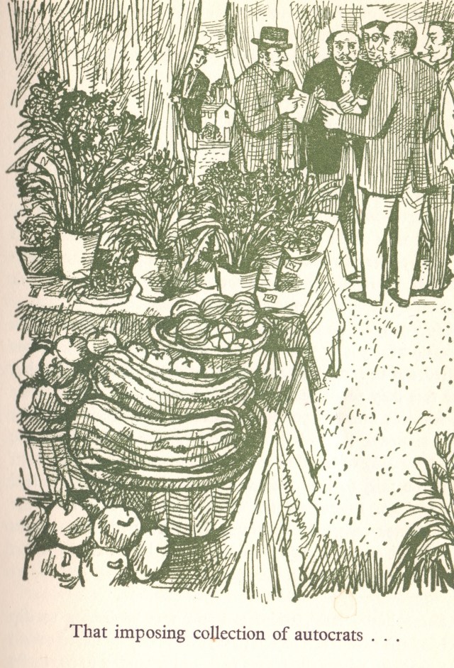 Herbert goes to work as one of three apprentices to head gardener Mr Addis who was “a fair man” and “getting on, but he still had a lot of kick left in him. Leaning heavily on tradition, he allowed no unfortunate experiments to shake his authority.” At this point Arkell reminds us that “English gardens had achieved a restful homeliness lying about midway between the elegance of the past and the professional competence of the future. Vistas, parterres and classical shrines had faded into the landscape. The modern marvels of the Chelsea Flower Show were yet to come. Life was placid, unimaginative and rather pleased with itself. There were no new worlds worth conquering. No urge, no rush, no worries. The sort of world that bred the sort of man Mr. Addis was proud to be.”