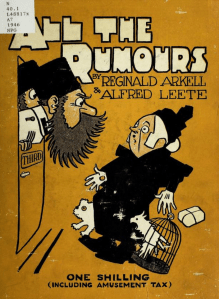 After the war Arkell began to work for Newnes, the publishing house, setting up or editing a number of magazines for them including Men Only and in his spare time continued to turn out articles, poems, songs and comic plays, many of which proved popular on the London stage. Later he moved into radio, television and film work with his most successful effort probably being the 1936 adaptation of Sellar and Yeatman’s spoof history book 1066 And All That for the stage and later the screen. [You can just about make out his name in the bottom right corner of the poster from the V&A collectiion]
