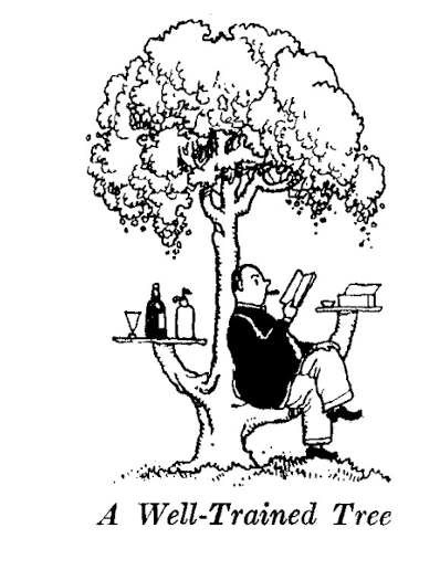 Another popular form of ornament is of course topiary “the art or science of distorting bushes into amusing shapes, a fascinating hobby for an enterprising gardener. There is little about an ordinary bush to compel the eye or revoke the gasp of admiration; but a bush that has been pruned into the semblance of Mr Winston Churchill has a definite entertainment value and is equally nested in by aesthetically minded fowls.”However, ” it should be remembered that a topiarised bush needs pretty constant attention, as Nature has no respect for Art and is apt – usually at night, when nobody is looking -to add extra twigs etc, which may ruin the whole effect by giving it a faintly improper look”