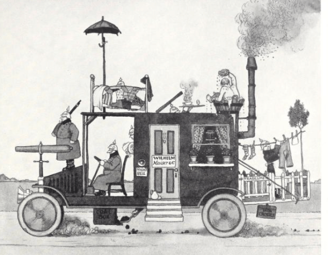 It was full of his weird and wonderful military inventions which were all designed to encourage laughter rather than horror in the viewer. I especially liked the one showing the Kaiser having a bath on top of his Imperial Campaigning Car.