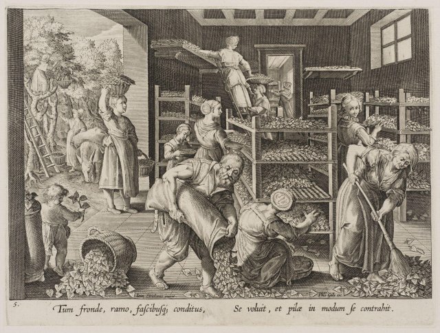 In 1607 de Serre’s book was translated by Nicholas Geffe as The Perfect Use of Silk-wormes and their Benefit, in which he argued “we may as well be silk masters as sheep masters,” and suggested planting mulberry trees everywhere, in preparation for feeding silkworms. The book was dedicated to James who saw establishing sericulture as a hugely ambitious project, with national honour at stake.