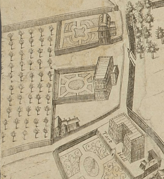 By 1632 “the custody and keeping of the Mulberry Garden near St James’s, in the county of Middlesex, and of the mulberries and silkworms there, and of all the houses and buildings to the same garden belonging” had passed to Lord Goring who built another house nearby which was often mentioned in contemporary diaries and later, after several more transformations, was to become Buckingham Palace.
