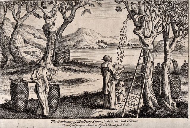 As the home of M. alba China had long had a monopoly of silk production but in 751 an Islamic army defeated the Chinese in Central Asia, and amongst their many prisoners were skilled silk weavers who were then taken back to start a silk industry across the Arab empire.