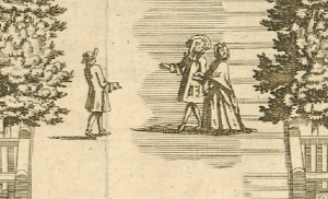 The booksellers of Moorfields using the rails of the walks as their counter, detail from an undated early 18th century print, private collection