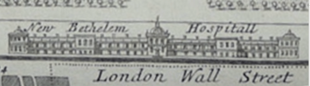 detail from an undated early 18th century print of Moorfields and Bethlem Hospital, private collection