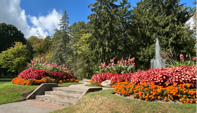 Well, if,like me until last week, you thought that Niagara meant only the world famous Falls and nothing else, you might be surprised to know there are other less heralded, indeed almost unknown, important sights within easy distance of the Falls: the area’s gardens and parks – many of them historic. They are some of the best planted and maintained examples of public planting I have seen anywhere, a mix of the high quality and very colourful Victorian-style bedding and modern sustainable planting, often using indigenous plant. There’s also a historic floral clock, a 99 acre [44 ha] botanic garden, and a world class horticultural college, as well as a whole range of nature conservation and environmental stewardship projects.