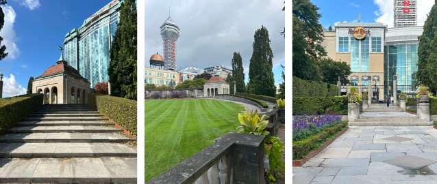 The gardens are impressive for their design and planting and are very much of their time. Equally importantly, these days they serve to highlight the importance of the setting and surroundings of a site and how they impact on its significance. When Oakes theatre Gardens were first opened they had no visual competition but nowadays unfortunately they are completely overshadowed by massive slabs of glass and concrete which dominate the Niagara skyline. It takes quite an effort for a visitor’s view and appreciation not to be affected .