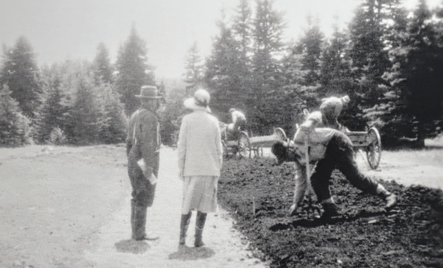 In 1926 at the age of 54, on doctor’s orders Elsie had to abandon salmon fishing as too physically challenging so she turned to gardening. She and Robert extended the lodge and added a second floor, one end of the house overlooking the river was for them and their guests while the other end housed their dozen or so servants.