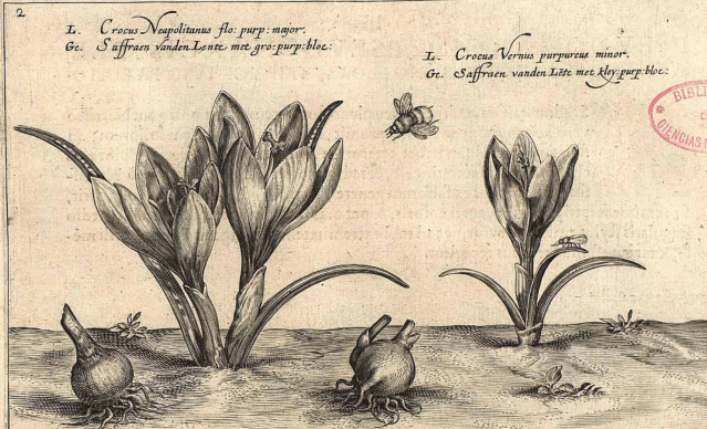 Non-European crocus first appear across Western Europe around the mid-16th century, when, like tulips, they were bought back from the Ottoman Empire by the Holy Roman Emperor’s ambassador to the Sublime Porte, Ogier Ghiselin de Busbecq. Some of those reached Clusius at Leiden and then spread into elite gardens where they attracted the attention of flower painters.