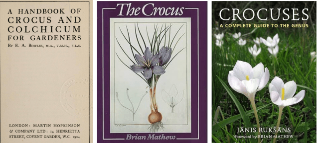 Since Maw’s day there have been three more major monographs on Crocus. However they’re all very much about taxonomy and identification & none of them has such by way of history. The first is the 1924 Handbook on Crocus and Colchicum by E.A.Bowles [who will be the subject of next week’s post], then in 1982 came Brian Mathew’s scientific and encyclopaedic volume The Crocus (1982). The latest which isn’t on-line and is a bit out of my price league is Jānis Rukšāns 2011 Crocuses: A Complete Guide to the Genus