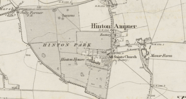There’s been a manor house near the church at Hinton Ampner since at least 1310. The estate was owned by St Swithun’s Priory in Winchester but after the Dissolution it passed to the Dean and Chapter of Winchester Cathedral who leased it out. At the end of Elizabeth I’s reign the tenant was Sir Thomas Stewkeley, and he and then his successors, the Stawell family, occupied the property for the next 200 years before the house was demolished in 1793 and a new lodge built nearby. It passed though the female line to the Dutton family in 1820 before in 1863 John Dutton purchased the freehold of “the neat mansion in a finely wooded park of 40 acres” from the Dean and Chapter. He then embarked on making significant changes to the house by calling in a local builder to Gothicise it.