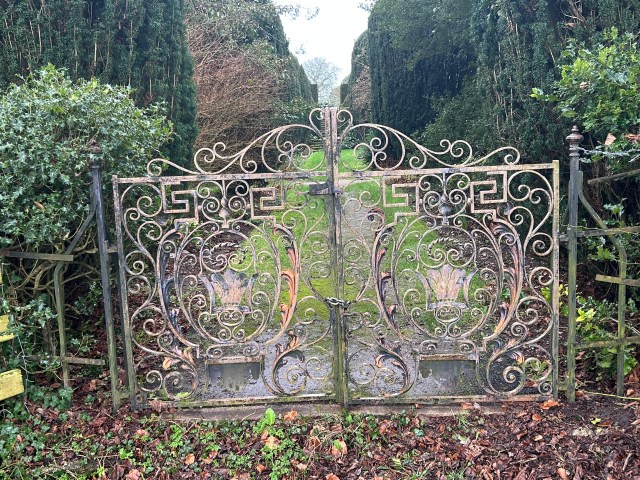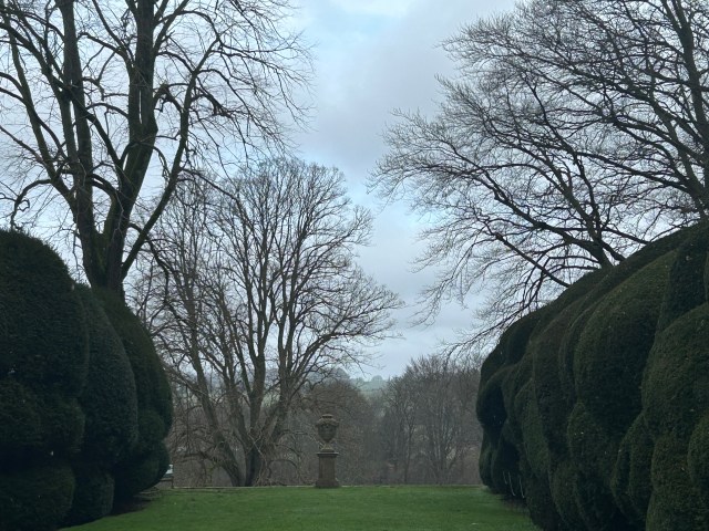 The steps from the Rose garden and the newly planted Irish Yews