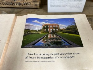 In 1936, Ralph made his first radio broadcast about the country house. And the following year did a follow-up book on The English Garden in which he claims to be “not a very knowledgeable plantsman” although he did seem to know a lot about the history of gardens. He set out his philosophy, treating the garden like an artist’s canvas-allowing no ‘dull or wasted areas’. The garden was to flow, “leading visitors from point to point, and vistas, long or short, come here and there into view.”