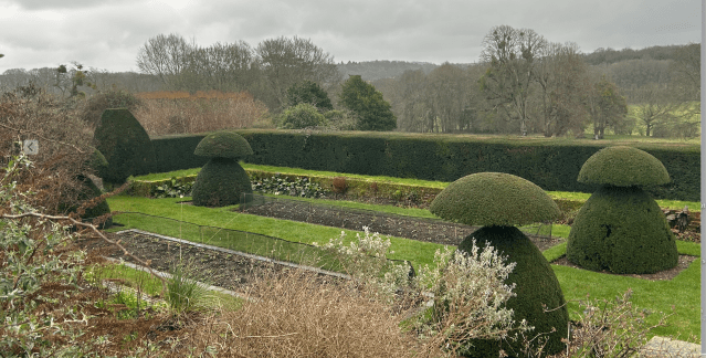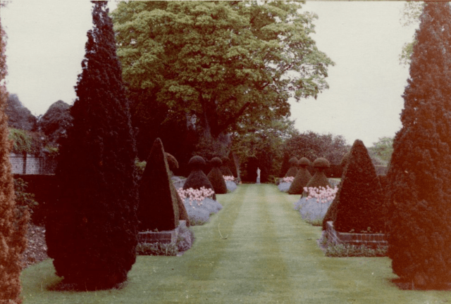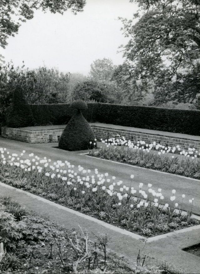Roper concluded that they were “low-keyed in colour, depending on trees and shrubs, topiary and lawns, and on walls and architectural features rather than on brilliant colour borders and parterre effects. It is, in fact, a well-designed modern garden, the dignified formality of which is a pleasant antidote to the numerous woodland gardens and over-sized cottage gardens which have become so prevalent in post-war Britain.”