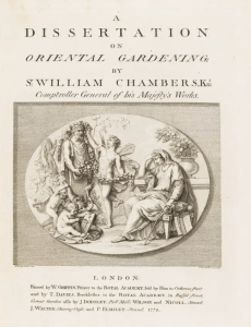 Trade through the East India Company, voyages like that of Admiral Anson [1740-44] and books such as William Chambers Dissertation on Oriental Gardening (1773) all helped ensure that both genuine and imitation Chinese designs and objects were very fashionable.