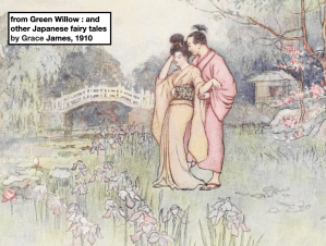 The story is first published in the west by Lafcadio Hearn in 1904 and then popularised for children in 1910 by Grace James. Having read both versions I can’t see why anyone would think it has such to do with the Willow Pattern other than the fact that it’scentred around a lovelorn couple and a willow tree. Nor can I find any reference to this story in English before these books, so Minton and Spode couldn’t possibly have known about it.