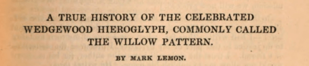 Who is there…who has not inquisitively contemplated the mysterious figures on the willow-pattern plate? Who, in childish curiosity, has not wondered what those three persons in dim blue outline did upon that bridge? Whence they came, and whither they were flying? What does the boatman without oars on that white stream? Who people the houses in that charmed island?—or why do those disproportionate doves for ever kiss each other, as if intensely joyful over some good deed done?