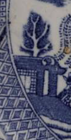 There’s no sense of any story or narrative being involved in this process , and in fact, some elements of the Willow Pattern design don’t get fixed in place immediately, with, for example, the two birds not always included until well into the 19th century.