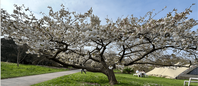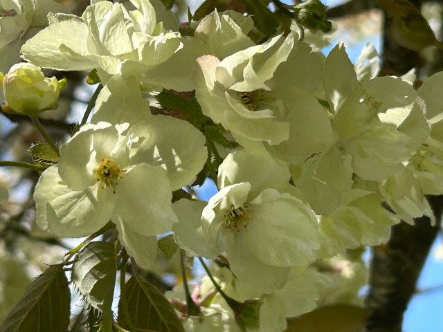 It has been set to music at least 60 times, most famously by Vaughan Williams. [If you don’t know it click here to hear it recited by Judy Dench or to hear it sung in a performance by Bryn Terfel] I was reminded of both the poem and the song on a recent visit to Kew on a lovely sunny day when the cherries were just coming into bloom and standing out against a bright blue sky.