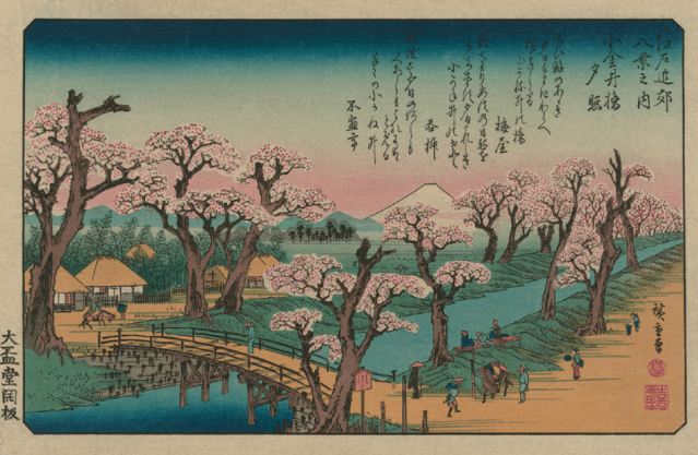 Not only was modernisation changing what the country looked like with “old oriental towns wiped out” replaced by “ultra Occidental buildings of great size and hideous” but political power was shifting. From western-aligned enlightened monarchy the country was moving towards aggressive nationalism and militarism, with cherry blossom being used as an emblem on the insignia of the country’s armed forces. Poems and propaganda linked the beautiful fragility of the blooms to the fragility of life serving the emperor. At the same time there had been a loss of variety in the cherries planted with one particular variety -Somei-yoshino – dominating, and becoming associated with the new regime.
